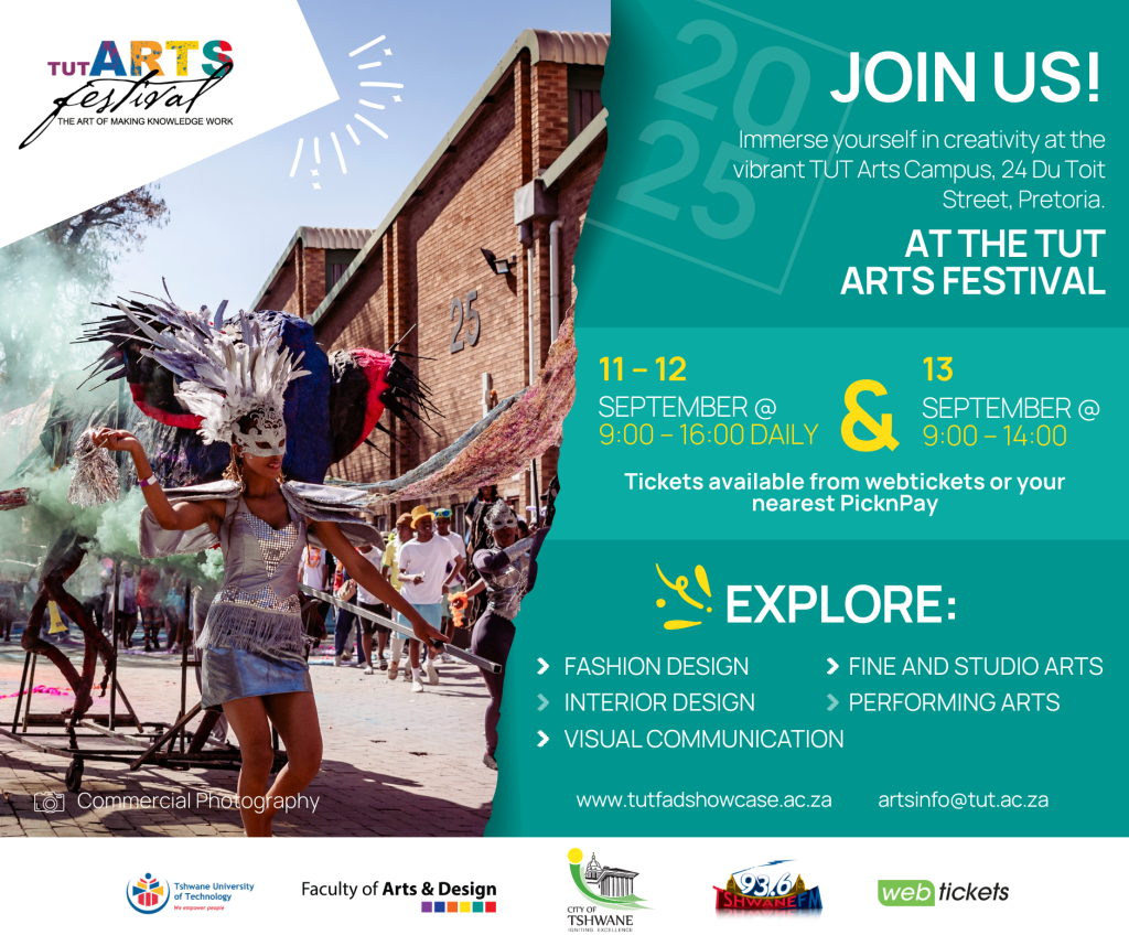 The Faculty of Arts and Design at the Tshwane University of Technology (TUT) is all set for its seventh TUT Arts Festival on the Arts Campus from 11 – 13 September 2025.