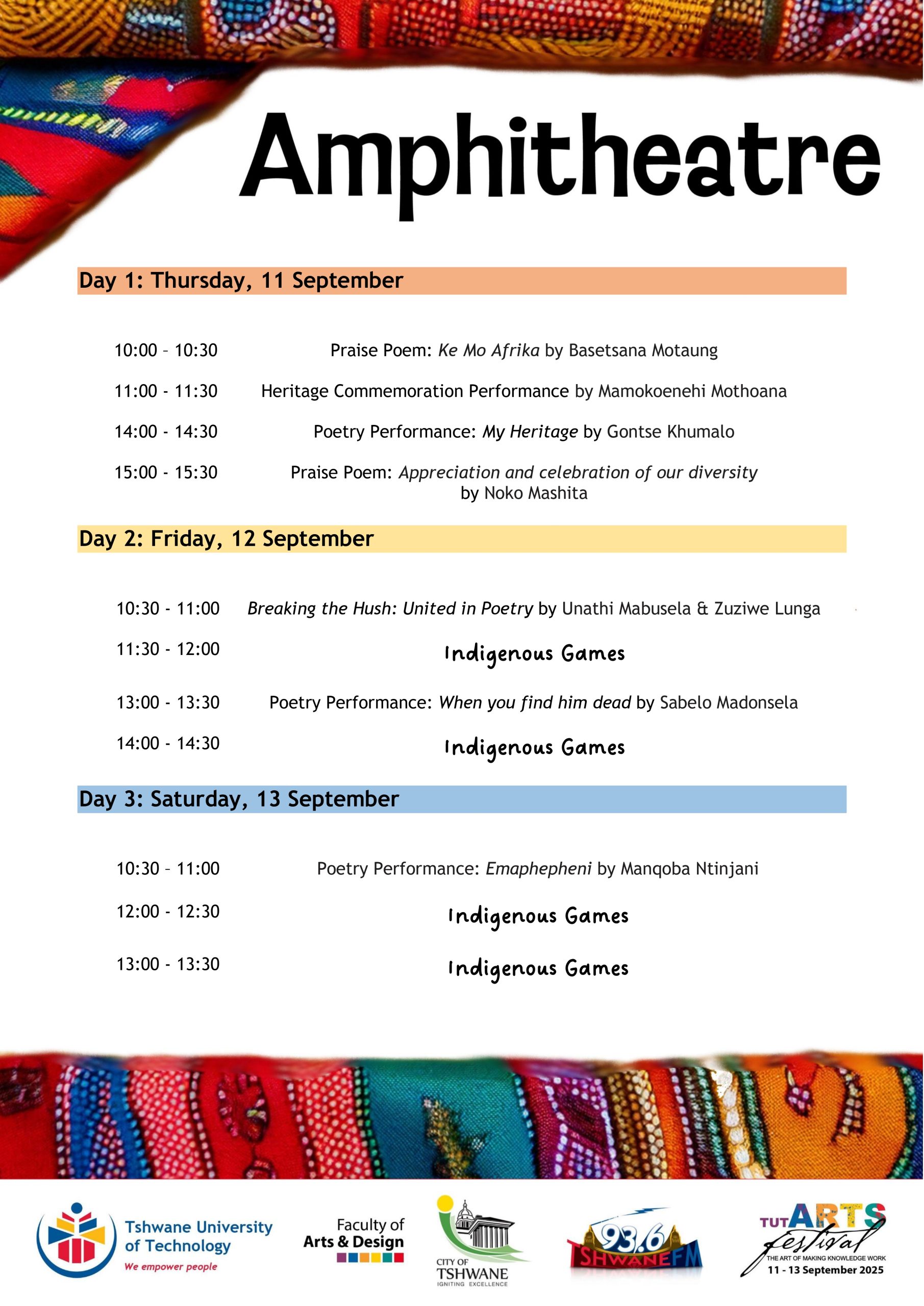 Day 1 of the TUT Arts Festival 2025 kicks off at 9:00 with a world of creativity waiting to be explored.